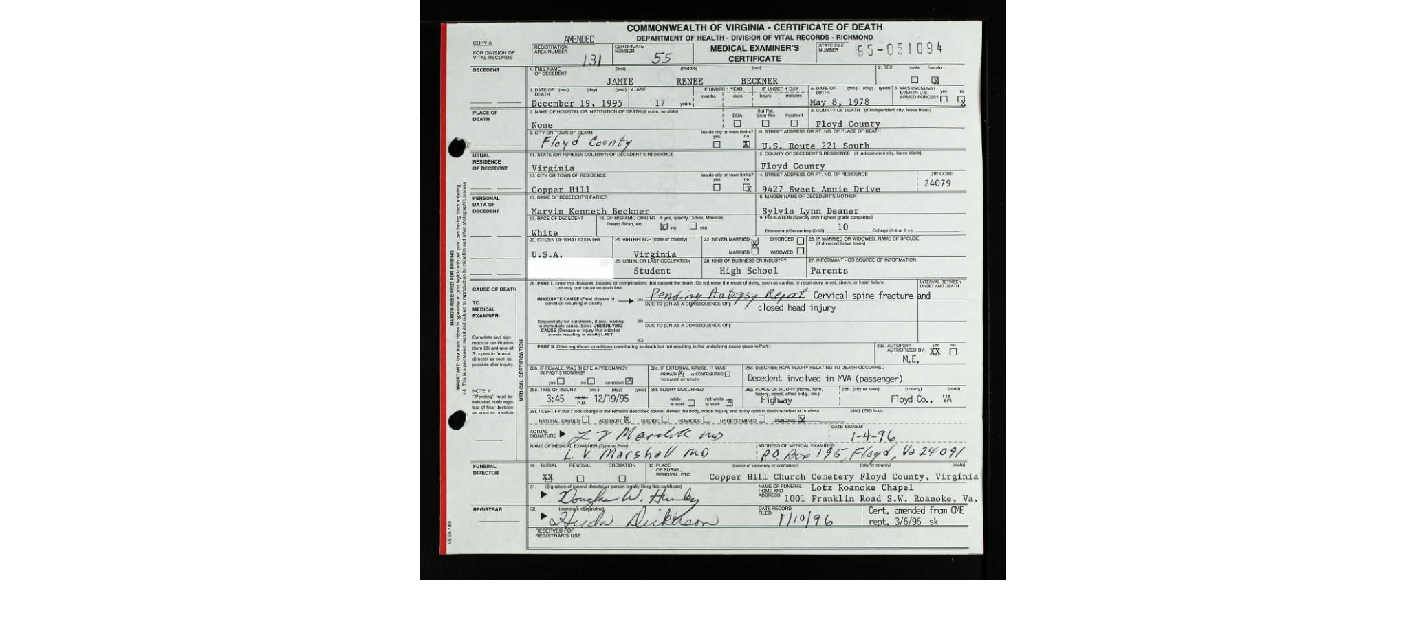 Preston & Nancy Ann (Trail) Allen. [Death Cert] [no file]