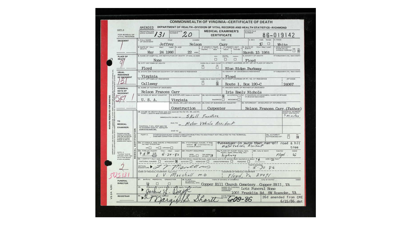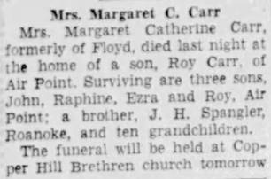 m. 1944 Floyd, Cora Manda Poff, d/o William Riley & Virginia Ann (Carr)