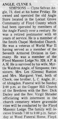 Chester Sr & Maude Lena (Sisson) Angle. [Death Cert] [Angle_Samuel_Elizabeth]