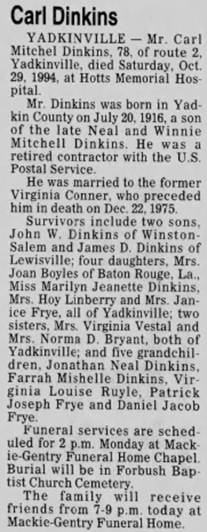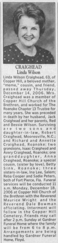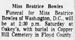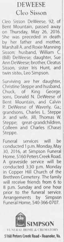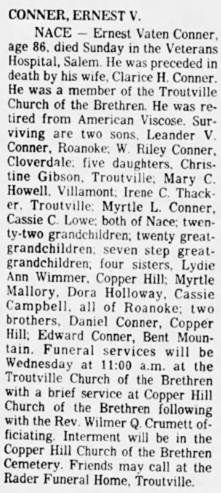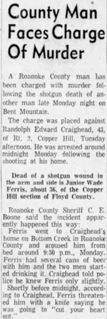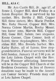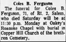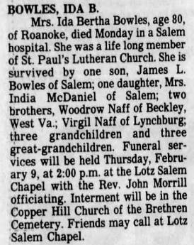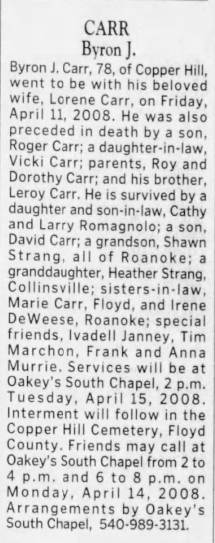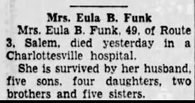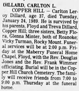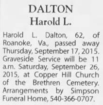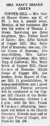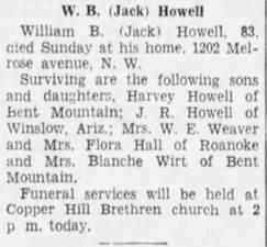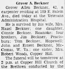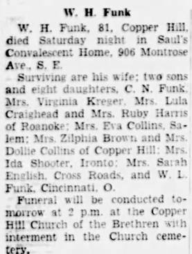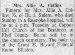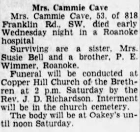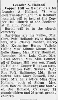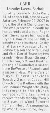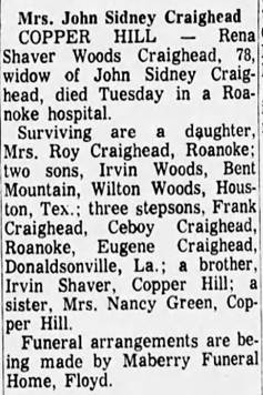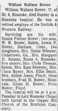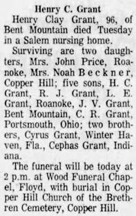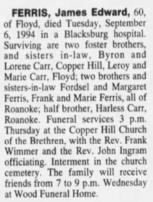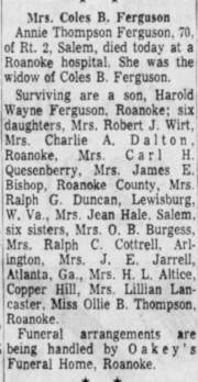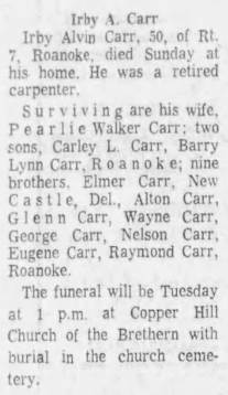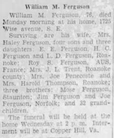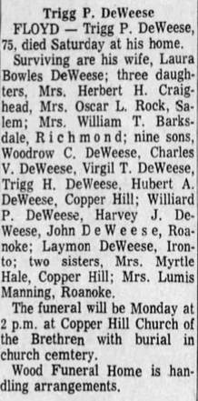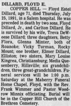 1936 Roanoke, div. 1951 & remarried 1952 Floyd, div. 1962 Roanoke, Arietta