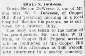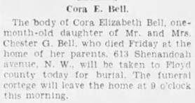 Floyd, s/o George Washington & Cora Belle (Reynolds) Hundley of Patrick Co., VA. [Death Cert] [no file] He