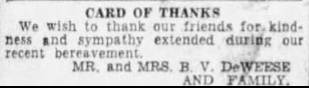 Hannah Adeline DeWeese, d/o Harvey & Sarah (Wimmer) Dewese. [Death Cert] [Dewese_Harvey_Sarah]