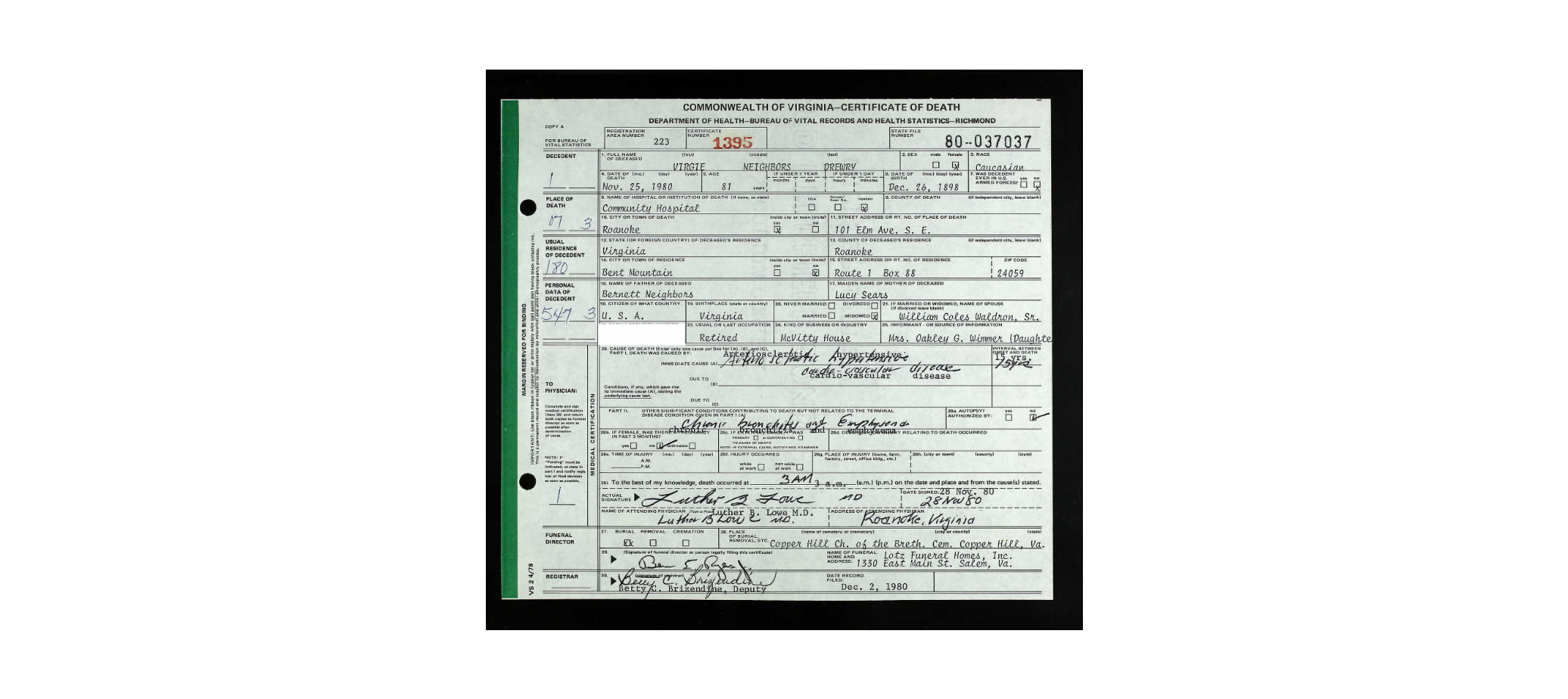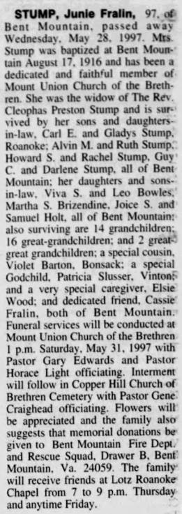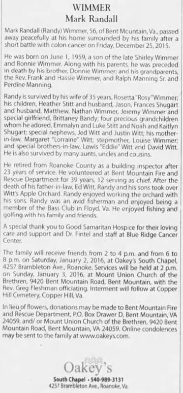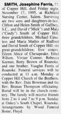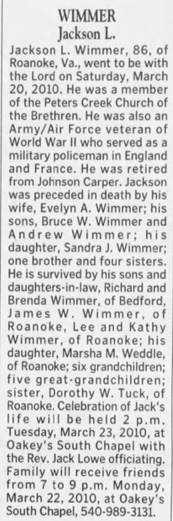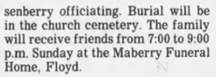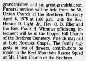 file] He is buried in Pleasant Dale Memorial Park, Botetourt Co., VA with