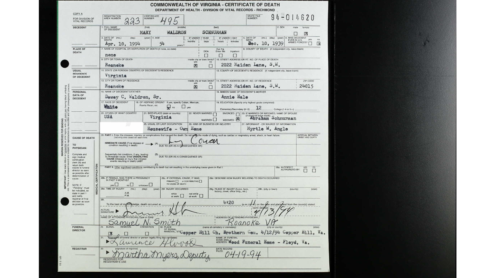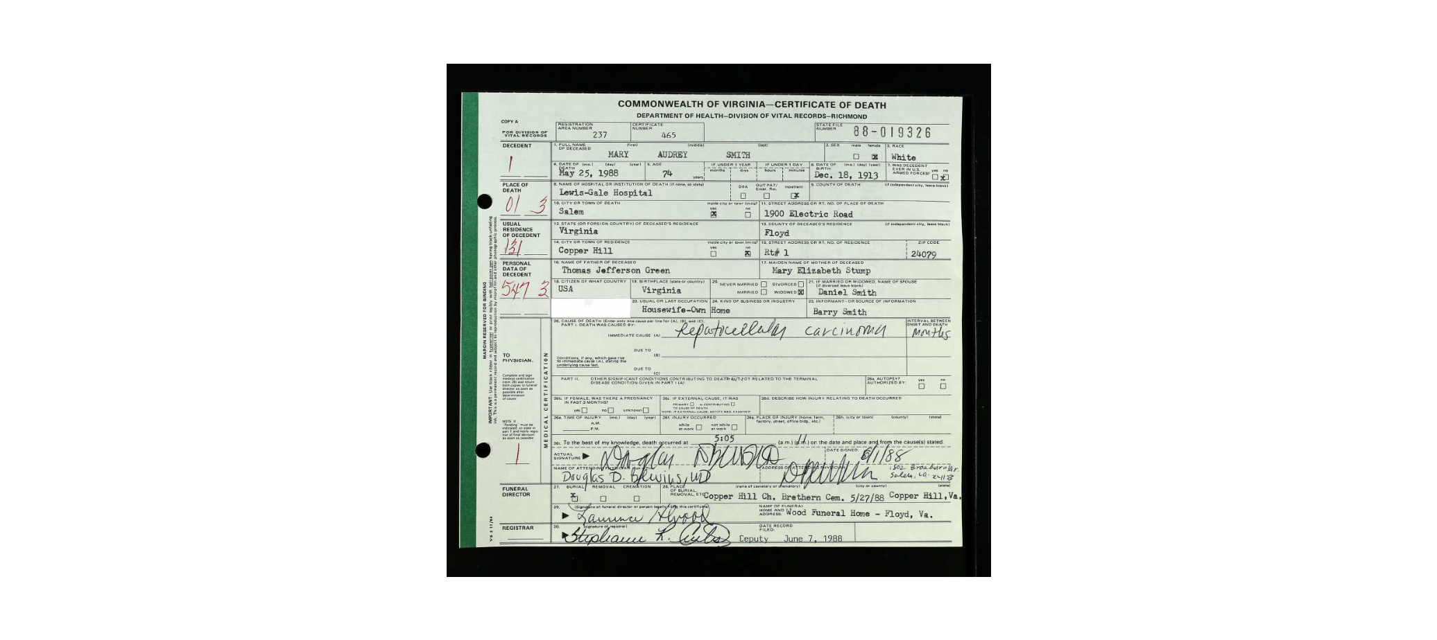 [Death Cert] [no file]