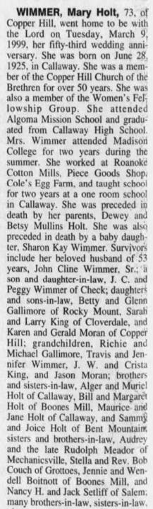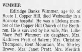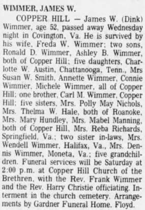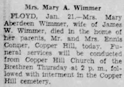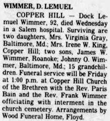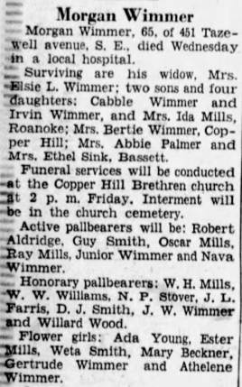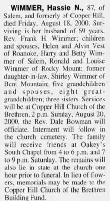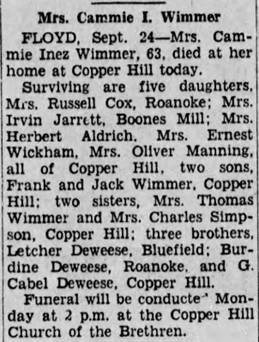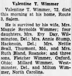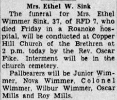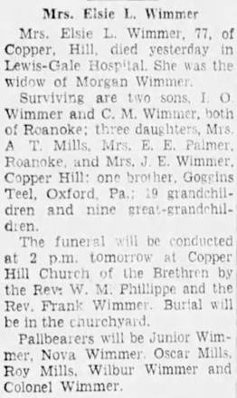 Virginia “Thel” Wimmer, b. Franklin, d/o Thomas Flemington & Hattie