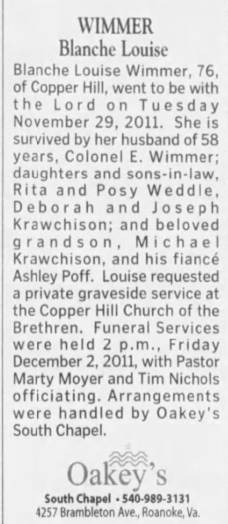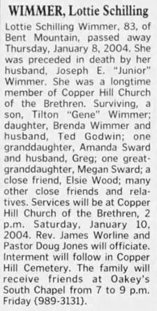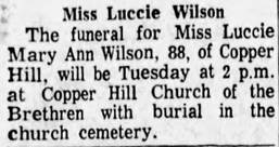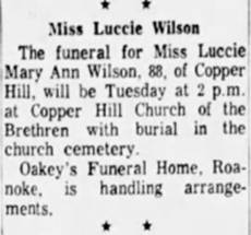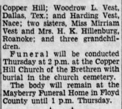 Interment will follow in Copper Hill Church of the Brethren Cemetery. The