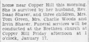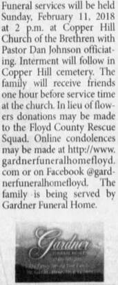 follow in the Copper Hill Church of the Brethren Cemetery. The family will