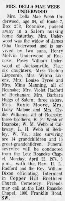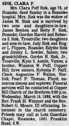 m. 1936 Roanoke, & divorced 1991 Roanoke, James Monroe Hale Sr,