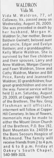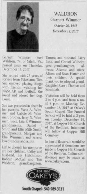 Elizabeth Carole Waldron, b. Roanoke, d/o Willliam Coles Jr & Norma