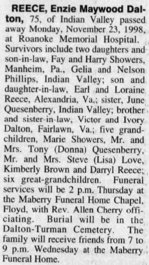 Dalton, d/o Arnold Bruce & Lillie Anna (Turman) Dalton. [Death Cert] [obit not
