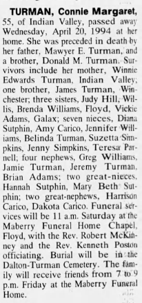 Brenda Gay Turman Williams, d/o Mawyer Eldridge & Winnie