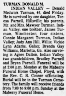 Paul Timothy Turman, s/o Sylvia Gay Turman, d/o Joseph