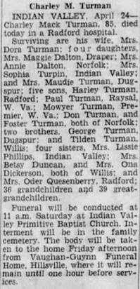 Paul William Turman, s/o Charlie Mack “Mack” & Eliza