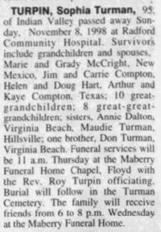 nee Sophia Helen Turman, d/o Charlie Mack “Mack” &