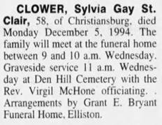 Preceded in death were her parents, Oscar and Myrtle St. Clair, husband,