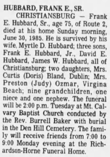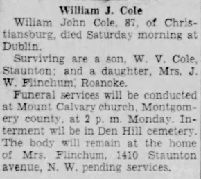 Interment will follow in Den Hill Cemetery, Christiansburg.