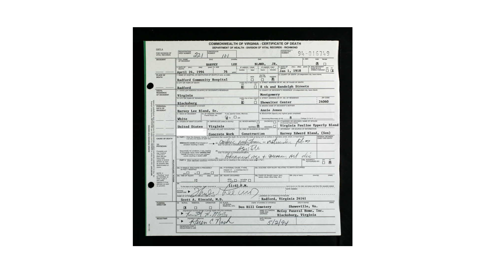Pulaski, Cliff and Barbara Luckado of Radford; several aunts, uncles,