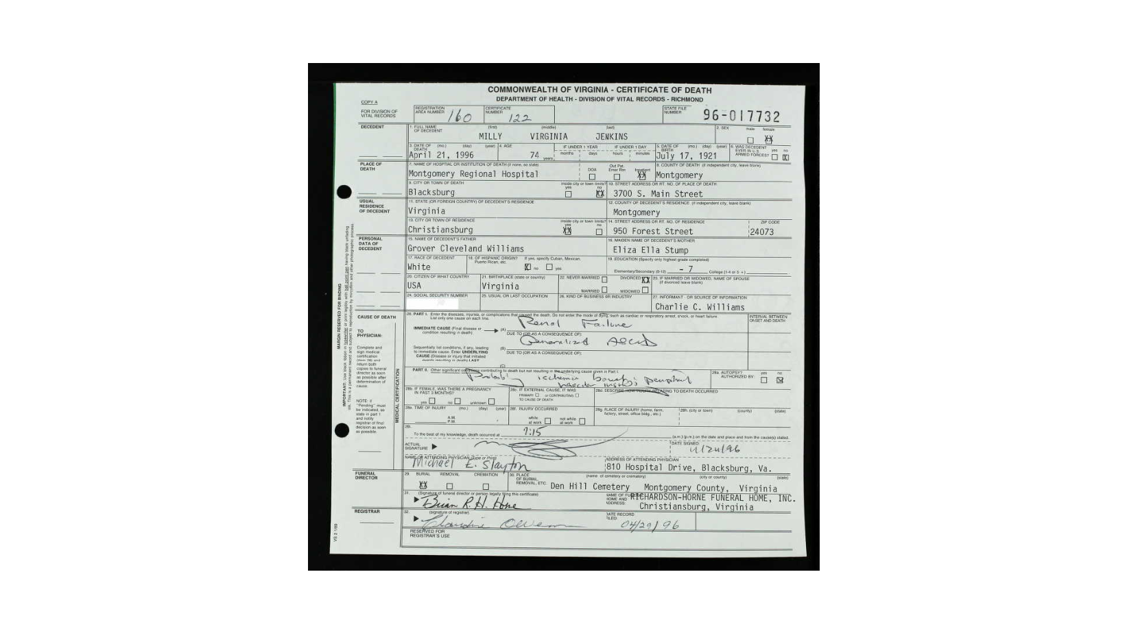 at Den Hill Cemetery, Christiansburg. Online condolences may be left by