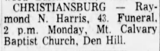 p.m. at the Horne Funeral Home. The Funeral will be held at 1:30 p.m. on