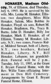Monroe Hedrick officiating. Interment will follow in Den Hill Cemetery. The