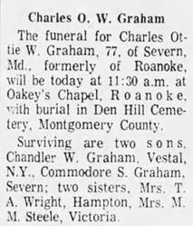 will follow in Den Hill Cemetery, Shawsville, VA. The Akers family