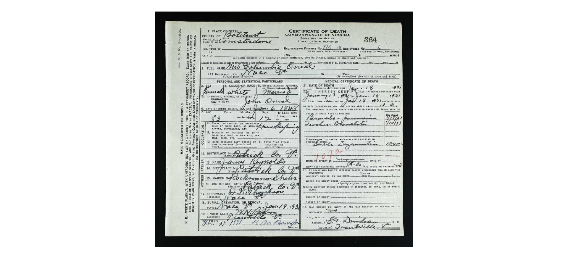 & parts of other years seeming to be missing. [Death Cert n/a] Virginia Death