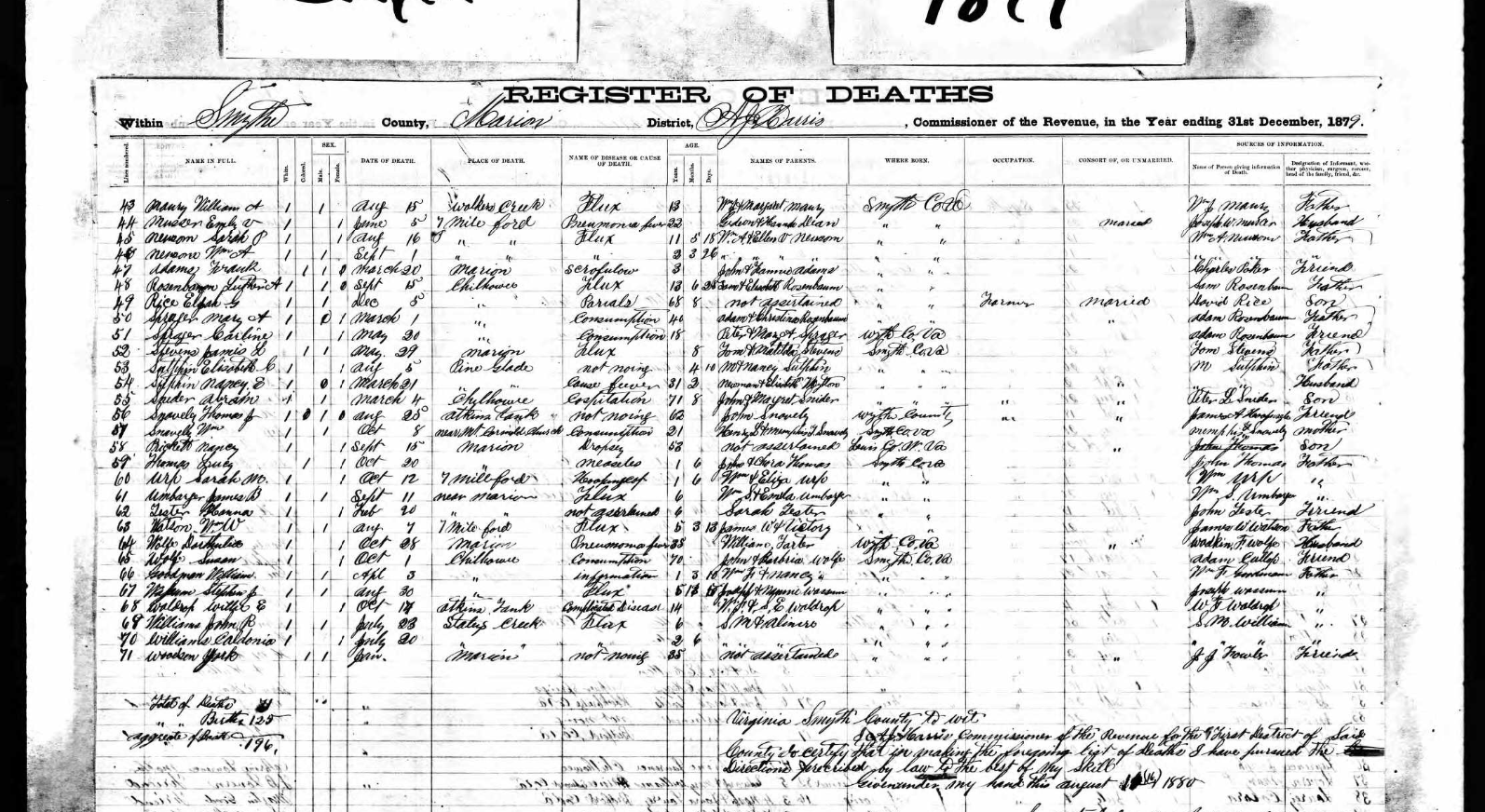 Harrison & Hannah Elizabeth (Wade) Hylton. [Death Cert] [Hylton_Riley_Hannah]