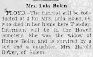 (d/o John & Lydia Russell and widow/o Wm. I. Bolen)