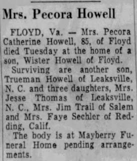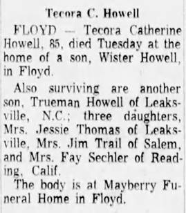 Tecora C. Howell (d/o John & Isabell Agnew DeHart)