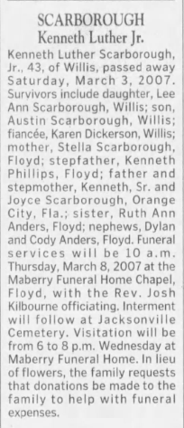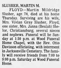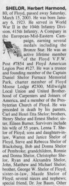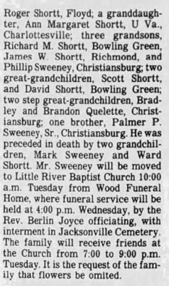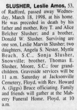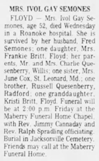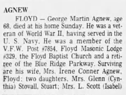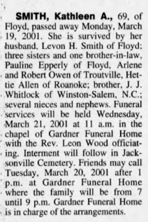 73, of Floyd passed away Friday, March 29, 2002. Survived by, husband,