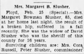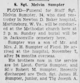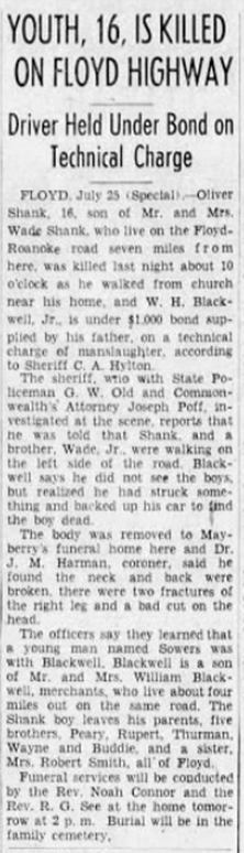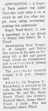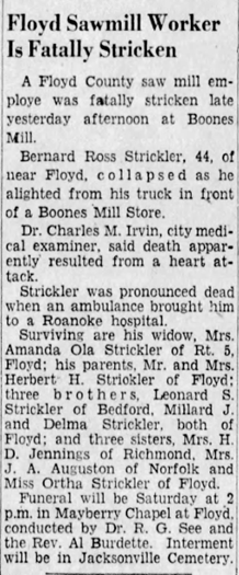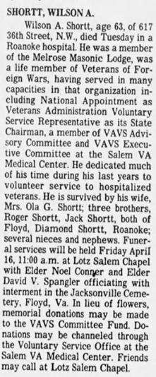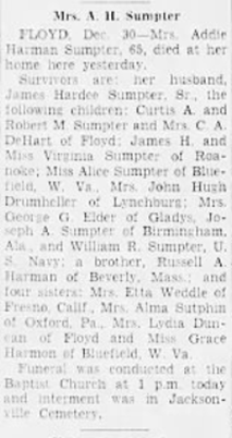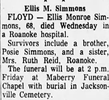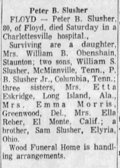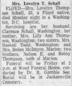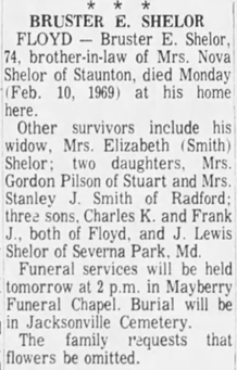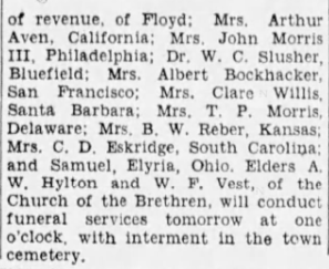 Rose, Clayton, Delaware; sister-in-law, Virginia Rose, Abbs Valley, Va.;