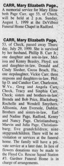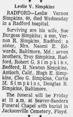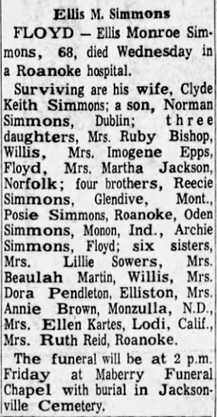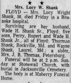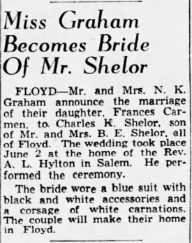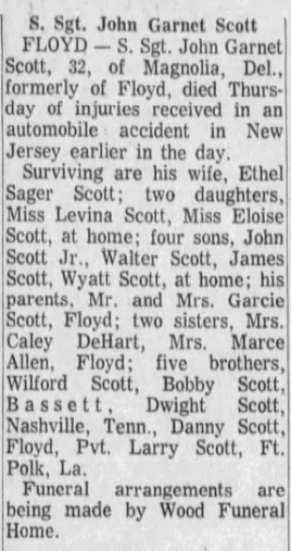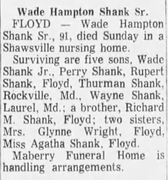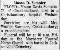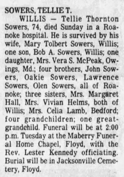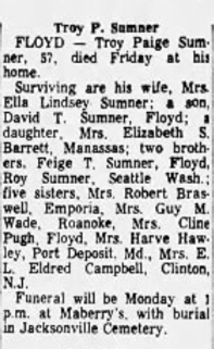 1st m. 1951 Bland, div. 1966 Pulaski, Sadie