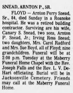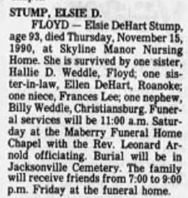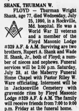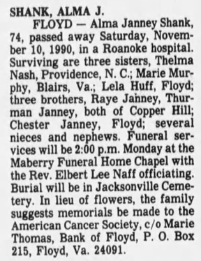 special nieces, Linda Cook, Floyd, Nancy Hubbard, Floyd. Funeral services