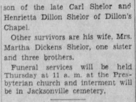 in the Jacksonville Cemetery. A visitation will not be held prior to the