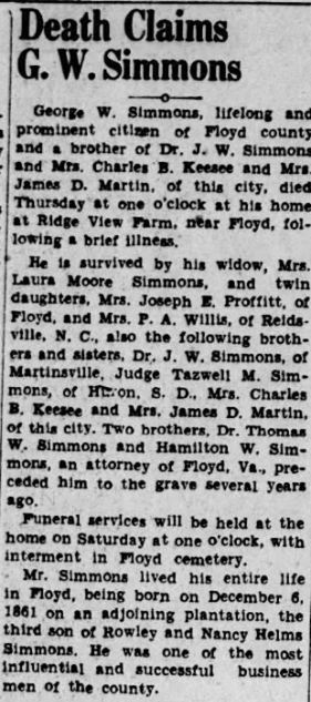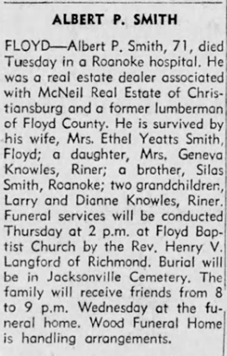 until 8 p.m. Gardner Funeral Home, Floyd, is in charge of the arrangements.