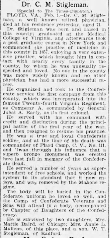 Robert Edward & 1st wife Susen Adelina (Rakes) Lee of Patrick. [Death Cert] [Lee_William_Mary]