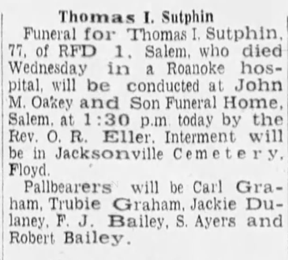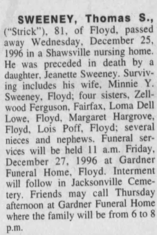 aka Thomas Strickler Sweeney, s/o Peter Edward “Pete”