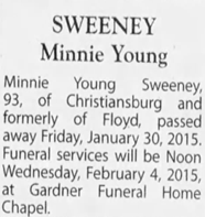 Minnie Young, d/o Charles Dallas & Mary Fannie