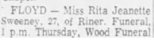 aka Rita Jeanette Sweeney, d/o Thomas Strickler &