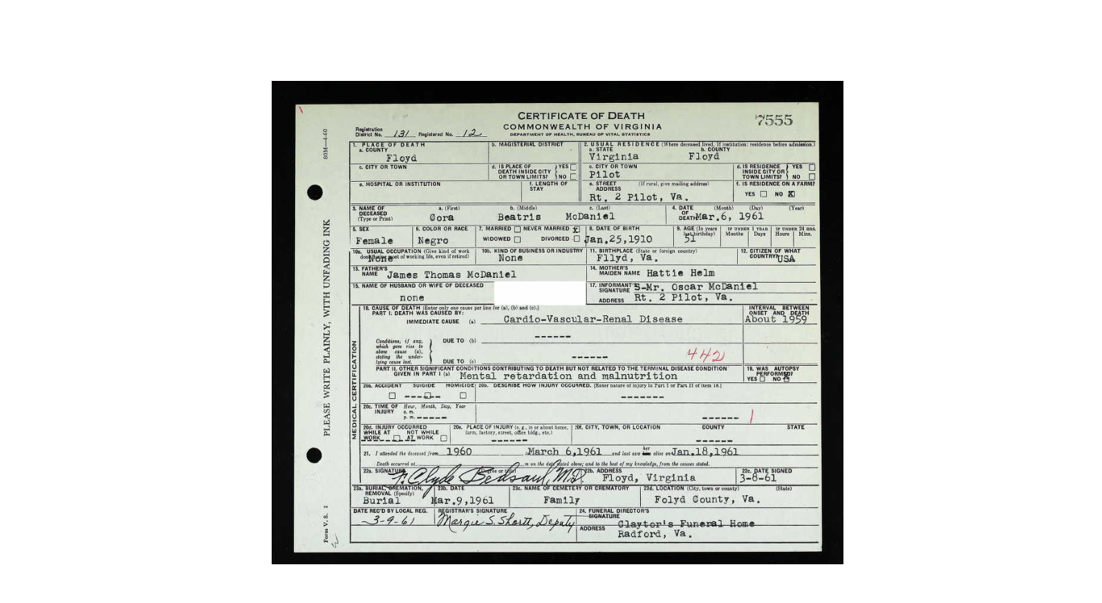 & parts of other years seeming to be missing. [Death Cert n/a] Virginia Death