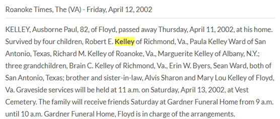 1st m. 1946 Hollins, VA, Richard Elwood