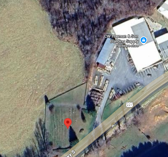 Family Cemetery, Floyd Hwy (Rt 221), Floyd Co., VA on a small hill beside store From the intersection of Main Street/Floyd Highway (US Highway 221) and Locust Street (VA Highway 8), travel approximately 5.71 miles south on Main Street/Floyd Highway; the cemetery will be on the right. The cemetery is located next to C.W. Harman & Son Building Supply. Floyd