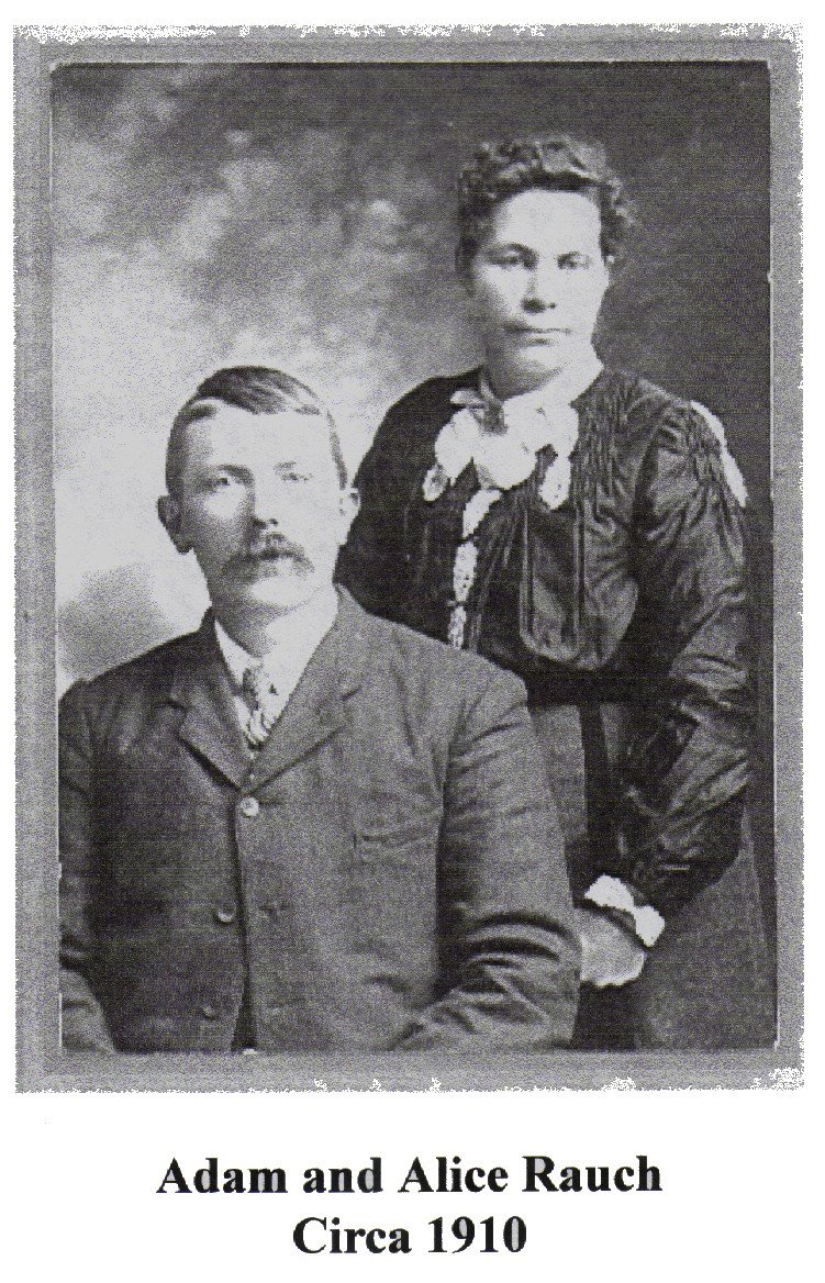 Adam Kasper RAUCH was born on 19 Jul 1867 in Theobaldshof, Rohn, Germany, son of Adam and Anna Maria (Zimmerman) Rauch. He died on 24 Nov 1948 in Bellingham, WA. Adam married Alice Viola REID in 1889 in Canistota, McCook County, SD. Alice was born 10 Oct 1867 in Quebec, Canada and died 2 Nov 1933 in Deming, WA. Both are buried in Lynden Cemetery. Adam RAUCH came to Whatcom Co. in 1901 and later owned a general store at Strandell, WA.