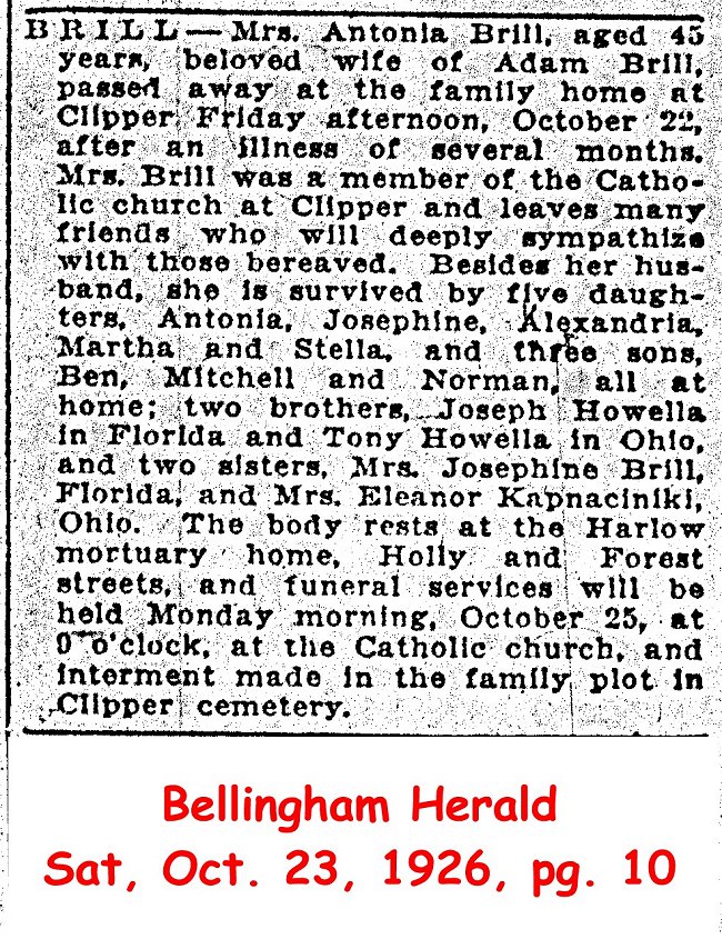 (From The Ferndale Record, March 28, 1924) Submitted by site coordinator.BRILL, Antonia (d. 1926)