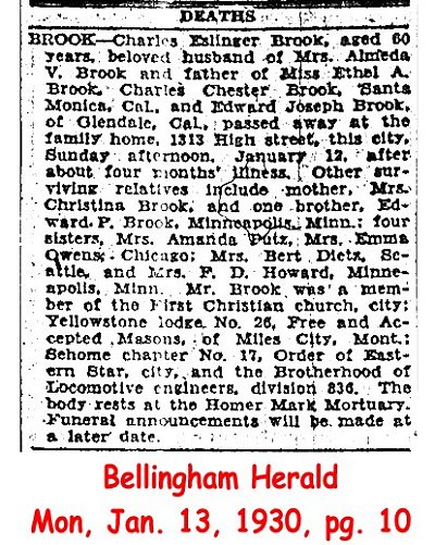 (From The Bellingham Bay Reveille, May 3, 1889) Submitted by site coordinator.BROOK, Charles Eslinger (d. 1930)
