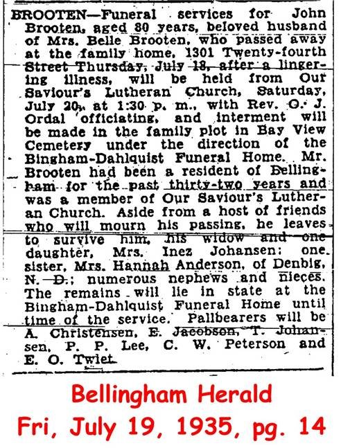 (From The Bellingham Herald, November 4, 1910)BROOTEN, John (d. 1935)