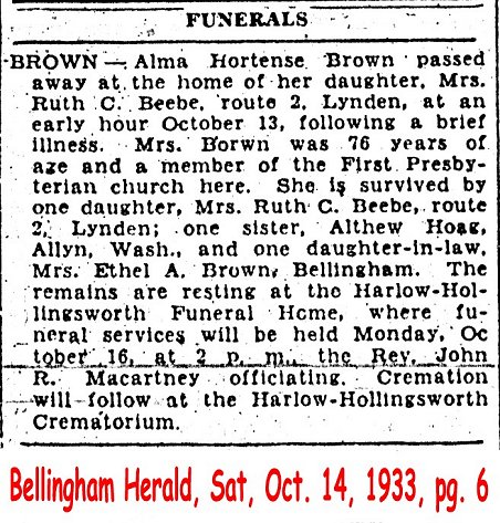 (From the Blaine Journal-Press, July 26, 1928) Submitted by Merrily Lawson.BROWN, Catherine (d. 1929)