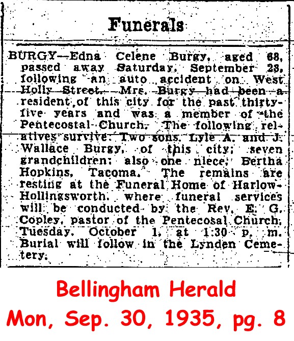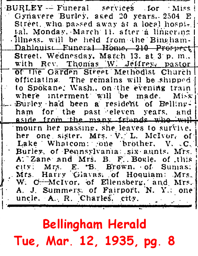 (From The Bellingham Herald, May 25, 1921BURLEY, Gynavere (d. 1935)