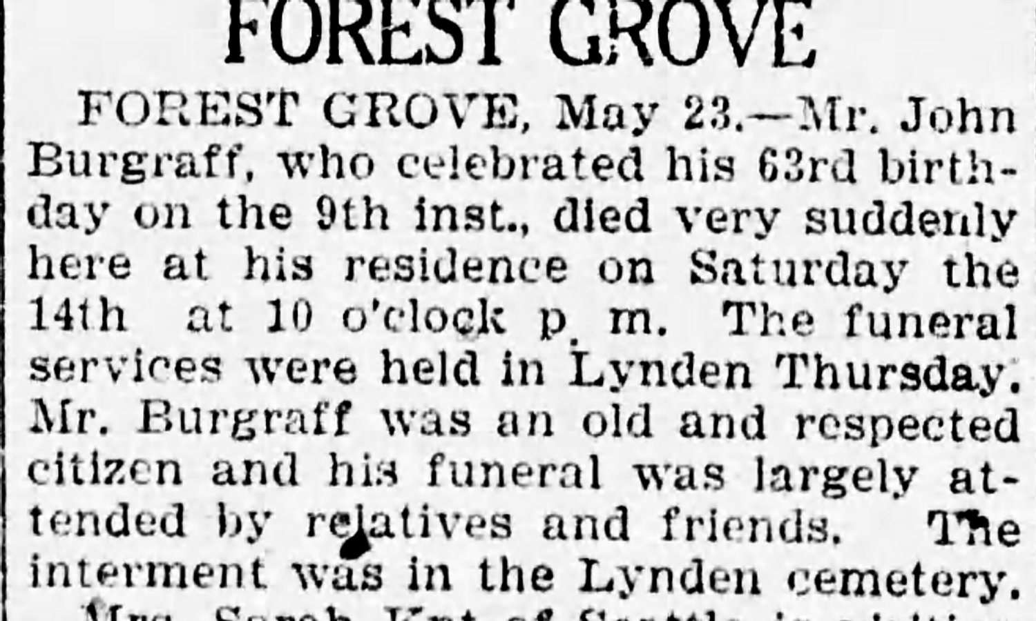 (From The Blaine Journal, February 27, 1903) Submitted by site coordinator.BURGRAFF, John (d. 1921)