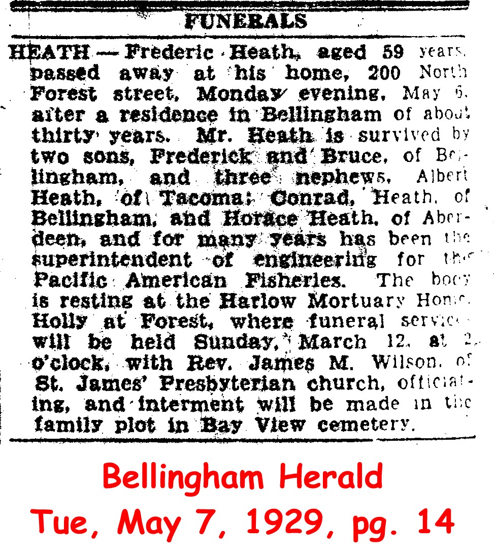 (From The American Reveille, February 24, 1915) Submitted by site coordinator.HEATH, Frederic (d. 1929)